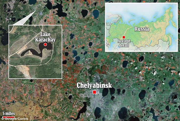 Περιφέρεια Τσελιάμπινσκ, σήμερα: Σχεδόν 70 χρόνια αφότου το εργοστάσιο πλουτωνίου ξεκίνησε τη λειτουργία, τεράστιες εκτάσεις στην περιοχή παραμένουν ακατοίκητες. Το μεγαλύτερο τμήμα της επιφάνειας της λίμνης είναι πλέον καλυμμένο από τσιμέντο.