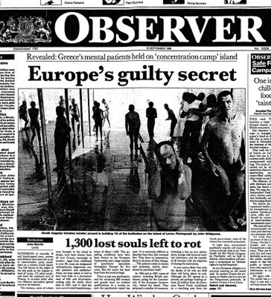 Το 1981 δημοσιοποιούνται οι πρώτες καταγγελίες για τις κάκιστες συνθήκες διαβίωσης στο ψυχιατρείο και την επόμενη χρονιά το Υπουργείο Υγείας αποφασίζει την παύση μεταφοράς ασθενών στο νησί. Μέχρι τις αρχές του ’90 οι ασθενείς της Λέρου δεν υπερβαίνουν πλέον τους 1000, ενώ τομή στην εξέλιξη των συνθηκών στην κλινική χαράσσει το άρθρο «Europe’s guilty secret» (Το ένοχο μυστικό της Ευρώπης) που δημοσίευσε το 1989 ο Observer και αναπαράχθηκε ευρέως από εφημερίδες σε όλο τον κόσμο και κυρίως το ντοκιμαντέρ Leros: Island of Outcasts (Λέρος: Νησί των Απόβλητων) που γυρίζει για λογαριασμό του βρετανικού Channel 4 η σκηνοθέτις Τζέιν Γκάμπριελ.