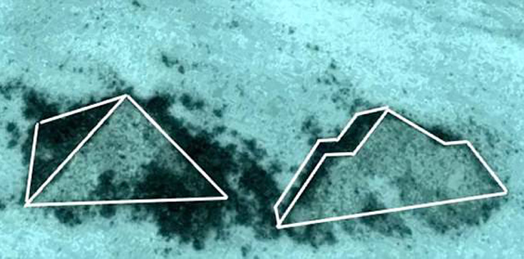 Οι δυο πυραμίδες, μας λένε, εντοπίστηκαν στα ανοιχτά των ακτών της Φλόριντα, κοντά στις Μπαχάμες, από κανέναν άλλο παρά τον γνωστό κυνηγό εξωγήινων Scott Waring, ο οποίος τις βρήκε ψάχνοντας για ανωμαλίες στο Google Earth.