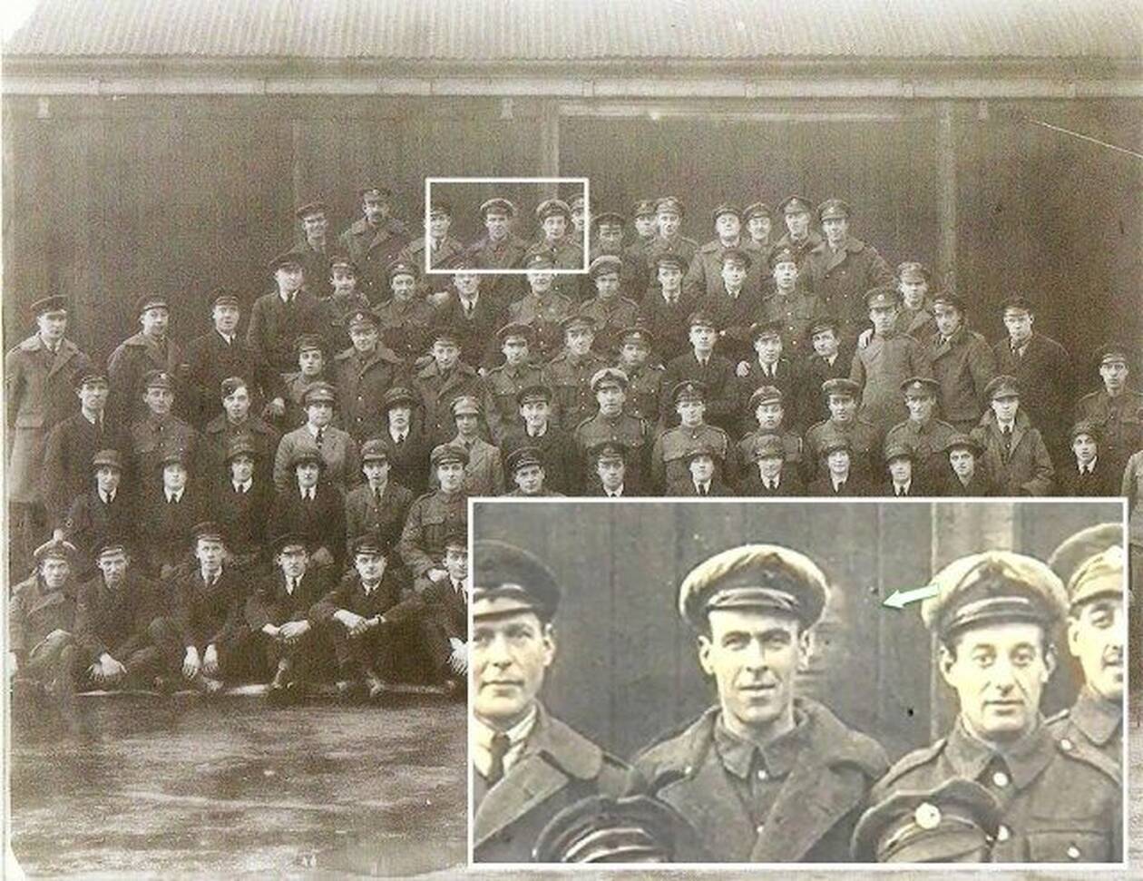 Πρόκειται για τον Freddy Jackson, μηχανικό της βρετανικής αεροπορίας, ο οποίος σύμφωνα με όλες τις μαρτυρίες είχε βρει τον θάνατο λόγω ατυχήματος στις προπέλες ενός αεροσκάφους δύο μέρες πριν τραβηχτεί αυτή η φωτογραφία. Μάλιστα, η κηδεία του είχε τελεστεί την ημέρα της λήψης. Ακόμη κι αν είμαστε πολύ δύσπιστοι, η «αχνή» φιγούρα του, μισοκρυμμένη πίσω από τον αξιωματικό αρκεί για να μας… σηκωθεί η τρίχα.