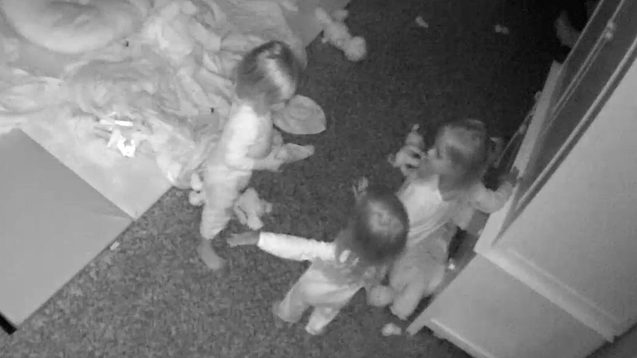 Όταν όμως η νεαρή μαμά κοίταξε την κάμερα στο παιδικό δωμάτιο, είδε ότι οι δίχρονες Πρίσλεϊ, Μίλι και Χέις δεν μάλωναν μεταξύ τους, αλλά έμοιαζαν να τσακώνονται με τον τοίχο.