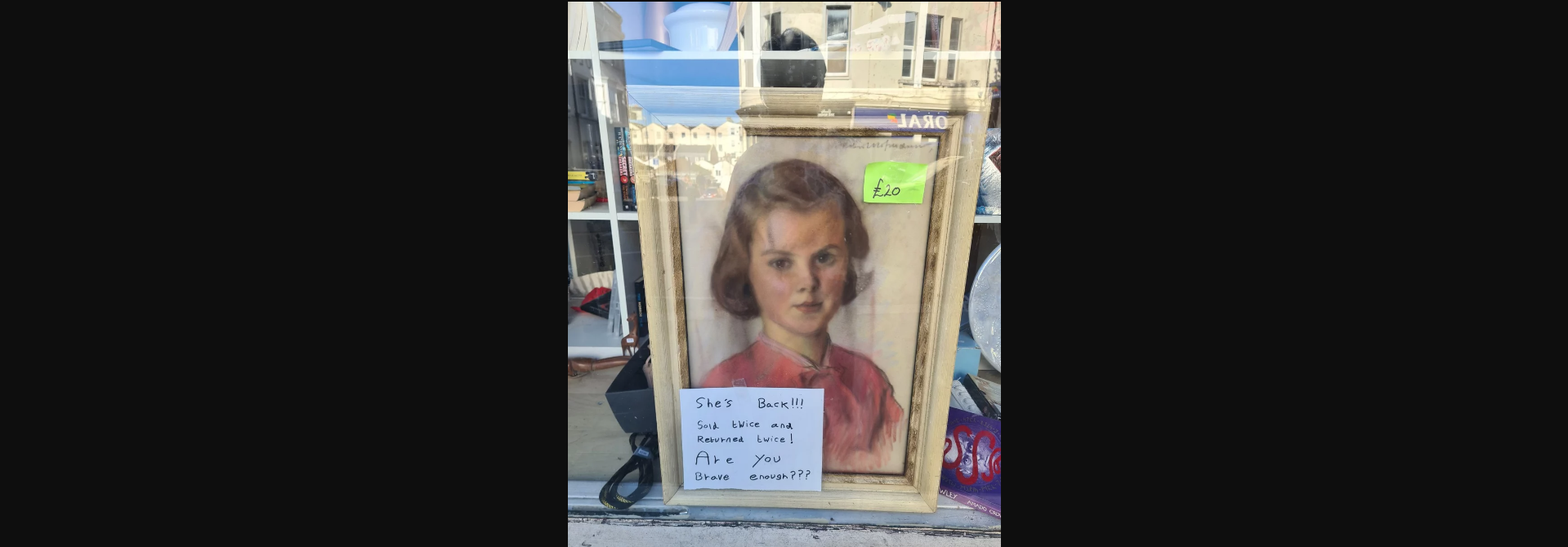 Πρόκειται για το πορτραίτο ενός κοριτσιού με «αυστηρή» έκφραση, που εικονίζεται να φοράει μία ροζ μπλούζα, και το οποίο πουλήθηκε δύο φορές από το ίδιο κατάστημα στο Χέιστινγκς, σε διαφορετικούς αγοραστές, ωστόσο και τις δύο φορές επεστράφη.