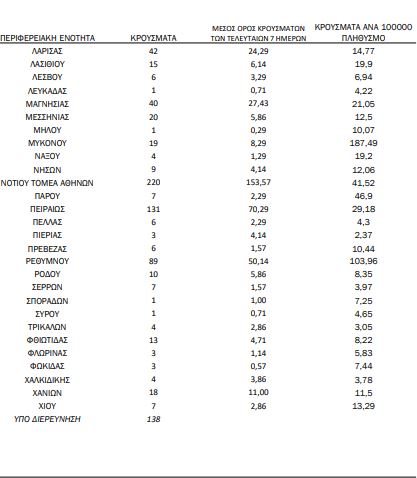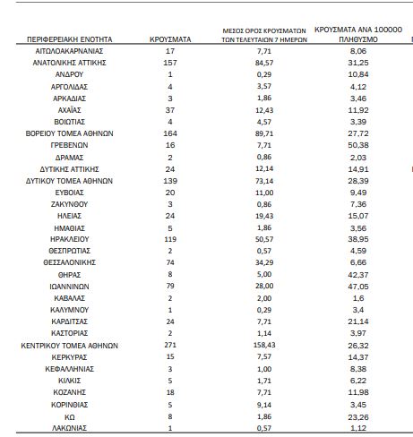 Αξιοσημείωτο είναι ότι στο νομό Ηρακλείου Κρήτης εντοπίστηκαν 119 κρούσματα, ενώ στον νομό Ρεθύμνου 89 κρούσματα.