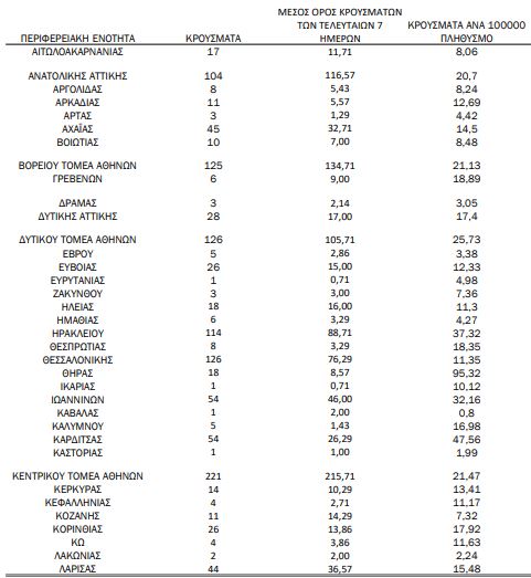 Αναλυτικότερα τα κρούσματα στις περιφερειακές ενότητες που ανήκουν στην Αττική: