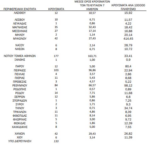 Αναλυτικά η κατανομή των νέων κρουσμάτων κορωνοϊού σε όλη τη χώρα:
