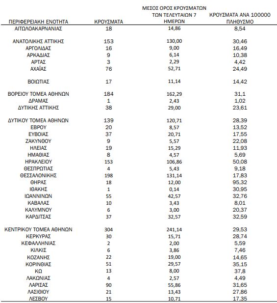 Αναλυτικότερα τα κρούσματα στις περιφερειακές ενότητες που ανήκουν στην Αττική: