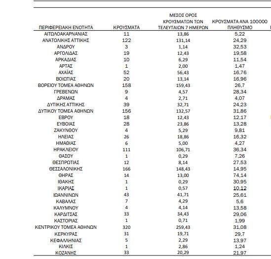 Αναλυτικότερα τα κρούσματα στις περιφερειακές ενότητες που ανήκουν στην Αττική: