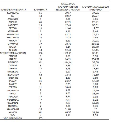 Αναλυτικά η κατανομή των νέων κρουσμάτων σε όλη τη χώρα: