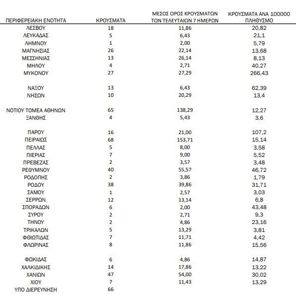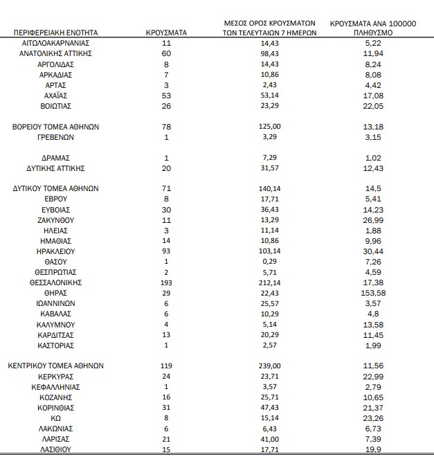 Αναλυτικά η κατανομή των νέων κρουσμάτων σε όλη τη χώρα: