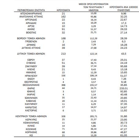 Αναλυτικότερα τα κρούσματα στις περιφερειακές ενότητες που καταγράφηκαν στην Αττική: