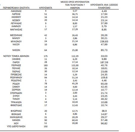 Αναλυτικά η κατανομή των νέων κρουσμάτων σε όλη τη χώρα: