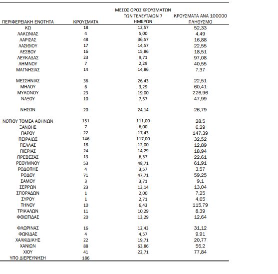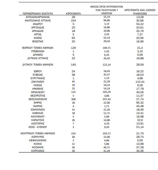 Αναλυτικά η κατανομή των νέων κρουσμάτων σε όλη τη χώρα: