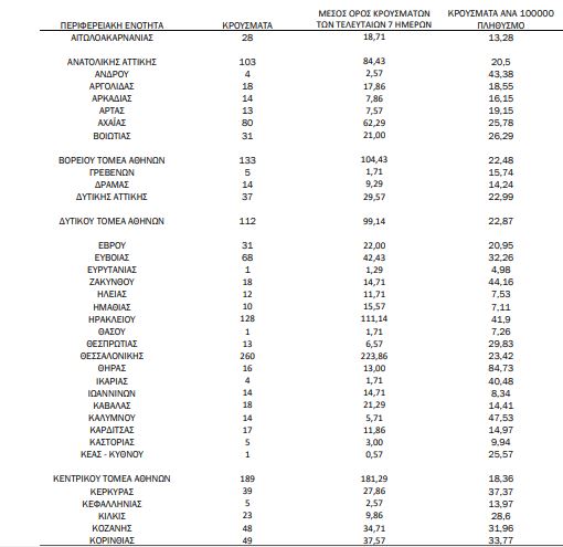 Αναλυτικότερα τα κρούσματα στις περιφερειακές ενότητες που ανήκουν στην Αττική:
