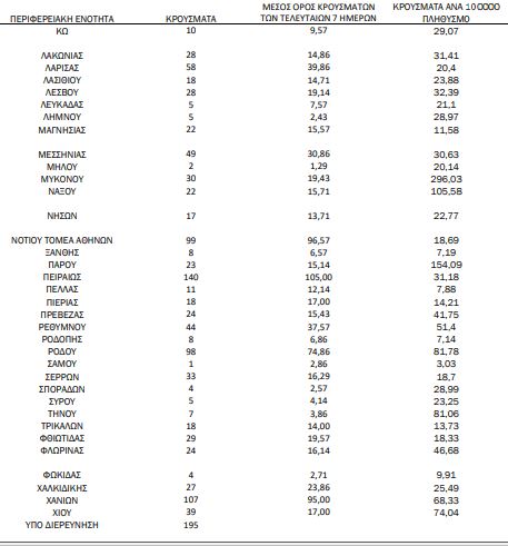 Αναλυτικότερα τα κρούσματα στις περιφερειακές ενότητες που ανήκουν στην Αττική: