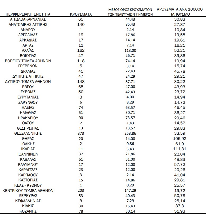 Αναλυτικότερα τα κρούσματα στις περιφερειακές ενότητες που ανήκουν στην Αττική: