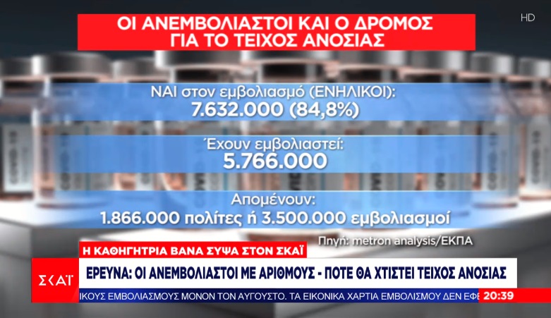 Τα συμπεράσματα νέας μελέτης από την Ιατρική Σχολή του ΕΚΠΑ και της Metron Analysis, με κύριους ερευνητές τους καθηγητές Βάνα Σύψα και τον ομότιμο καθηγητή Άγγελο Χατζάκη – την οποία συνυπογράφουν μεταξύ άλλων οι καθηγητές Σωτήρης Τσιόδρας και Δημήτρης Παρασκευής αποκαλύπτουν ότι διαχρονικά το ποσοστό των «αρνητών» παραμένει σχεδόν αμετάβλητο κυμαινόμενο από 7% έως 10%.