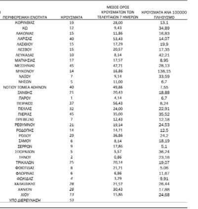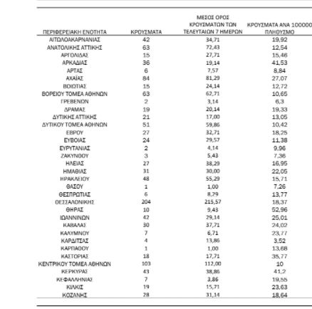 Με βάση τα επιβεβαιωμένα κρούσματα των τελευταίων 7 ημερών, 144 θεωρούνται σχετιζόμενα με ταξίδι από το εξωτερικό και 1.712 είναι σχετιζόμενα με ήδη γνωστό κρούσμα.