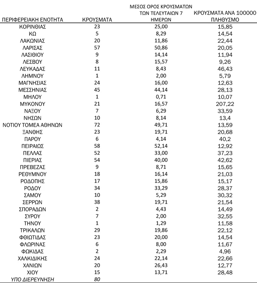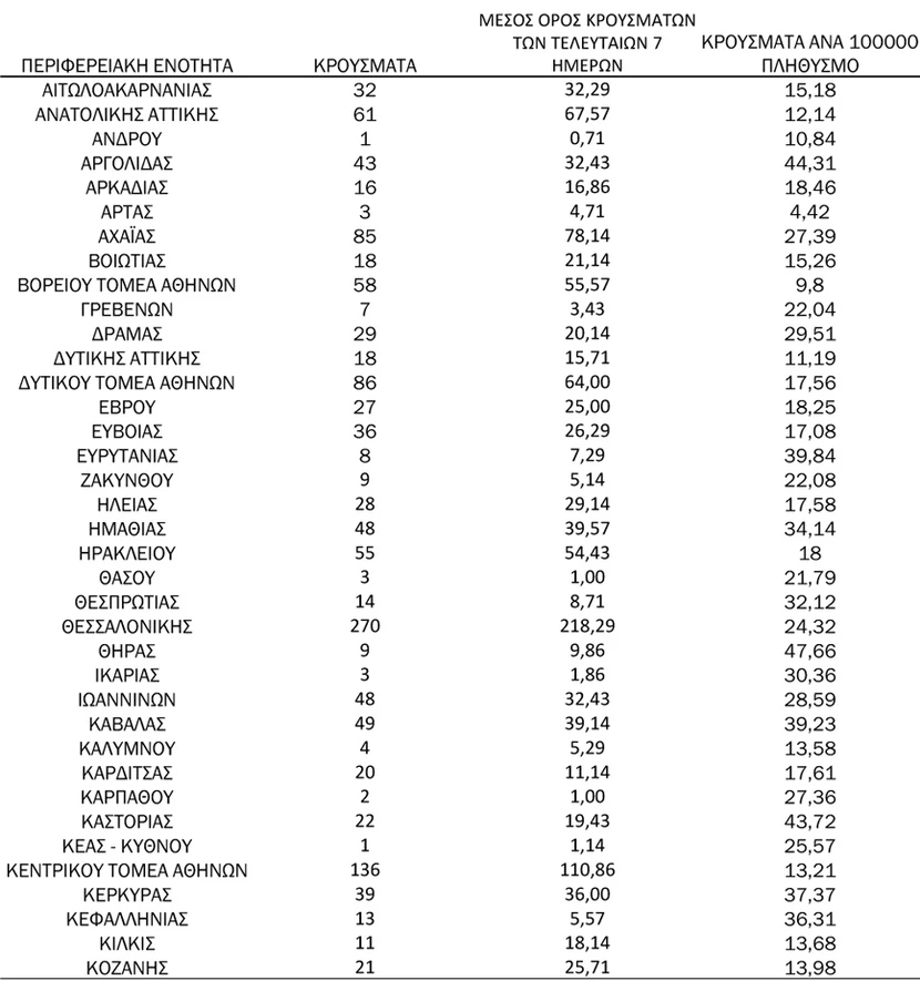 Από την άλλη η Θεσσαλονίκη σημείωσε 270 κρούσματα, ενώ η Αχαΐα 85 αντίστοιχα.