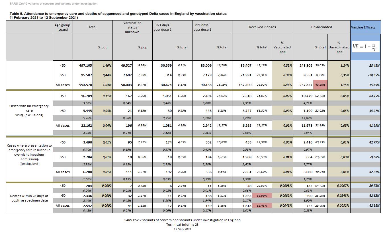 Συγκεκριμένα από τους 2.542 θανάτους ανθρώπων που είχαν μολυνθεί από τη μετάλλαξη Δέλτα μόλις οι 772 αφορούν ανεμβολίαστους, αντιθέτως οι 1.779 αφορούν εμβολιασμένους (είτε πλήρως, είτε με μια δόση), ενώ 41 θάνατοι δεν έχει αποσαφηνιστεί εάν αφορούν εμβολιασμένους ή όχι.
