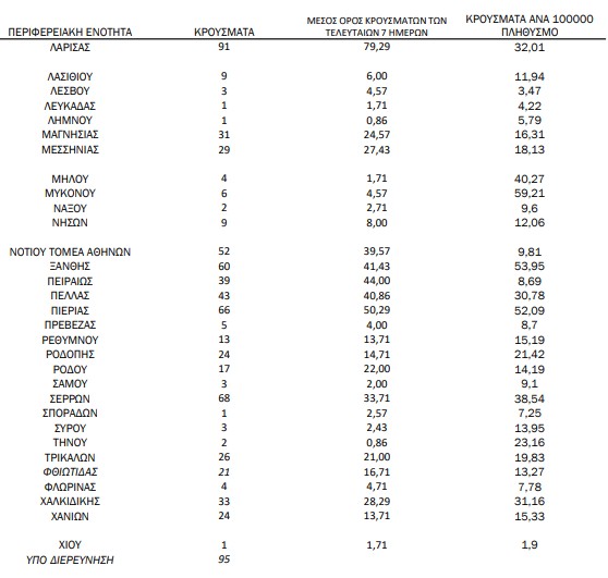 Αναλυτικότερα τα κρούσματα στις περιφερειακές ενότητες που ανήκουν στην Αττική:
