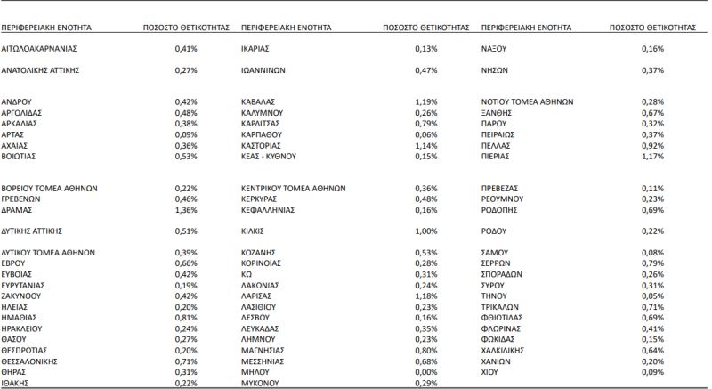 Αξίζει να σημειωθεί, ωστόσο, πως η Βόρεια Ελλάδα φαίνεται ότι είναι σε πιο δεινή επιδημιολογική θέση σε σχέση με την υπόλοιπη χώρα. Αυτό γιατί πέντε Περιφερειακές Ενότητες ξεπέρασαν το 1%, συγκεκριμένα η Δράμα είχε 1,36%, η Καβάλα 1,19%, η Καστοριά 1,14%, το Κιλκίς 1% και η Πιερία 1,17%.