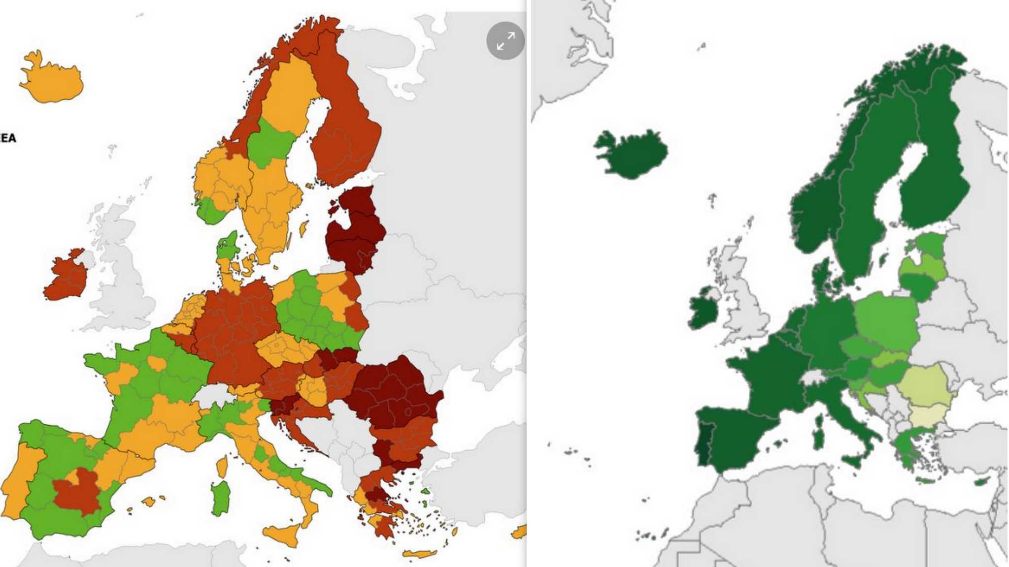 Δείτε τον πρόσφατο χάρτη του Ευρωπαϊκού Κέντρου Πρόληψης και Ελέγχου Νόσων (ECDC) σχετικά με τον δείκτη θετικότητας των χωρών και τον δείκτη test ανά 100.000 κατοίκους.