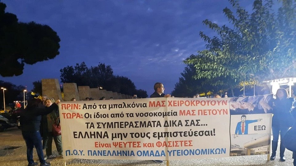 Στην πορεία συμμετέχουν και υγειονομικοί που έχουν τεθεί σε αναστολή εργασίας.