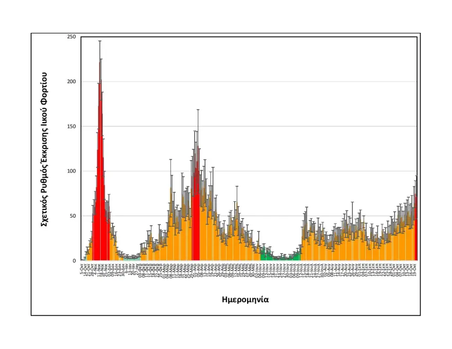 Συγκεκριμένα, στα δείγματα που λαμβάνονται καθημερινά στην είσοδο της Εγκατάστασης Επεξεργασίας Λυμάτων Θεσσαλονίκης, αναφορικά με τις εξορθολογισμένες τιμές σχετικής έκκρισης ιικού φορτίου, η μέση τιμή των δύο πιο πρόσφατων μετρήσεων, δηλαδή της Τετάρτης 20/10 και της Πέμπτης 21/10 είναι: