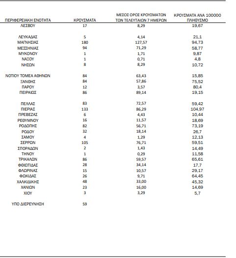 Οι νέοι θάνατοι ασθενών με COVID-19 είναι 54, ενώ από την έναρξη της επιδημίας έχουν καταγραφεί συνολικά 15.682 θάνατοι. Το 95.4% είχε υποκείμενο νόσημα ή/και ηλικία 70 ετών και άνω.
