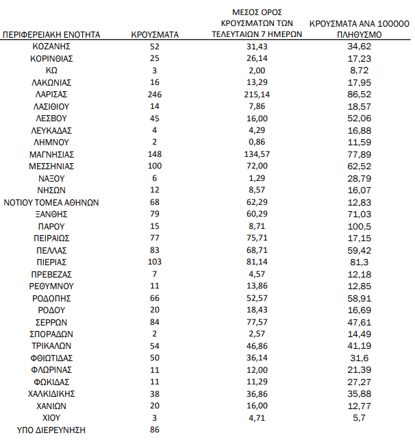 Αναλυτικότερα τα κρούσματα στις περιφερειακές ενότητες που ανήκουν στην Αττική: