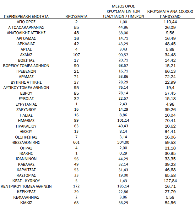 Αναλυτικότερα τα κρούσματα στις περιφερειακές ενότητες που ανήκουν στην Αττική:
