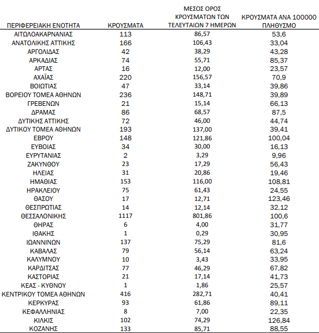 Που εντοπίζονται τα κρούσματα – Αναλυτικά ο χάρτης