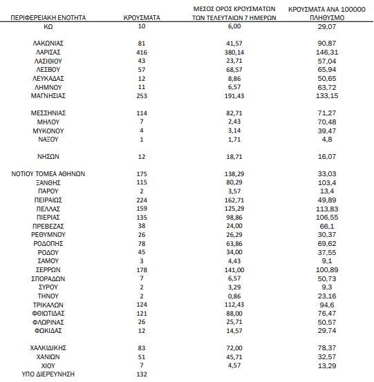 Αναλυτικότερα τα κρούσματα στις περιφερειακές ενότητες που ανήκουν στην Αττική: