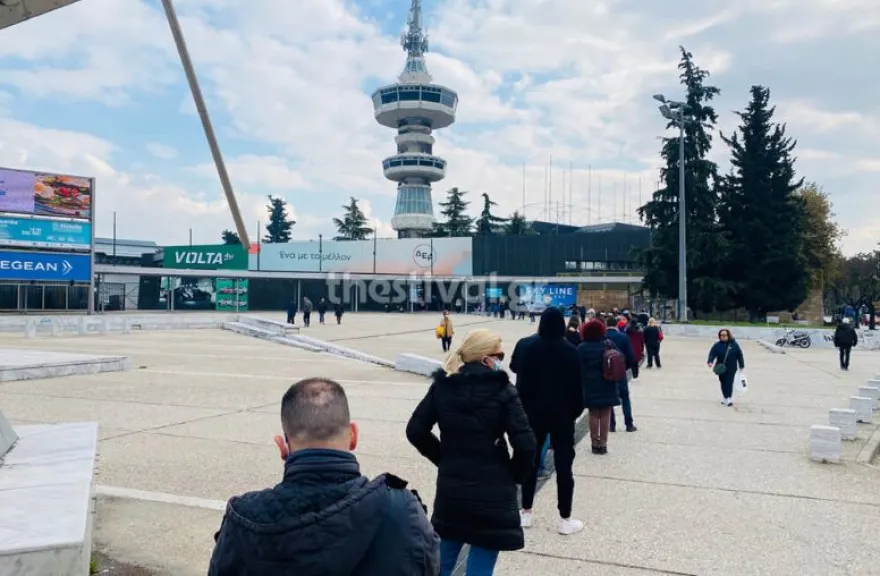 Για ακόμη μία ημέρα, πλήθος κόσμου βρέθηκε στη νότια πύλη της Διεθνούς Έκθεσης Θεσσαλονίκης προκειμένου να υποβληθεί σε rapid test από τα κλιμάκια του ΕΟΔΥ.