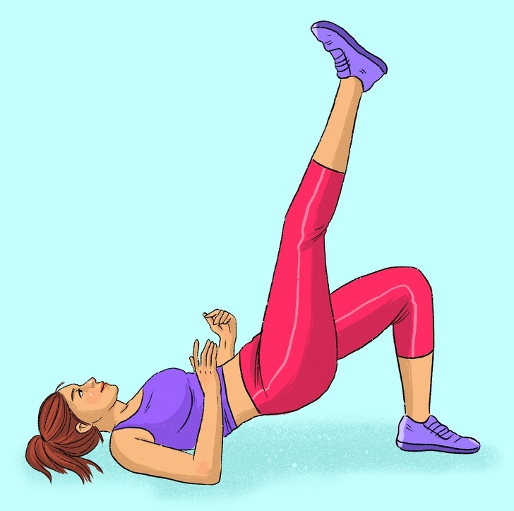 Ξαπλώστε ανάσκελα και λυγίστε τα γόνατά σας. Ανασηκώστε τους γοφούς και το ένα πόδι, ασκώντας πίεση στη φτέρνα και τις ωμοπλάτες. Παραμείνετε στη θέση αυτή για 5-10 δευτερόλεπτα. Επιστρέψτε στην αρχική θέση και αλλάξτε πόδι.