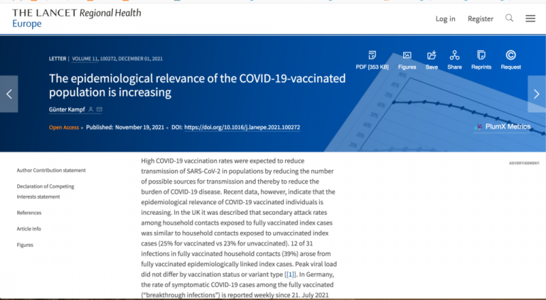 Tην ίδια στιγμή που κυβερνήσεις και media διασπείρουν ξανά τον πανικό και εργαλειοποιούν τον φόβο, έρχεται το ”Lancet” και ισχυρίζεται ότι οι εμβολιασμένοι νοσούν και μεταδίδουν τον ιό περισσότερο από τους ανεμβολίαστους.