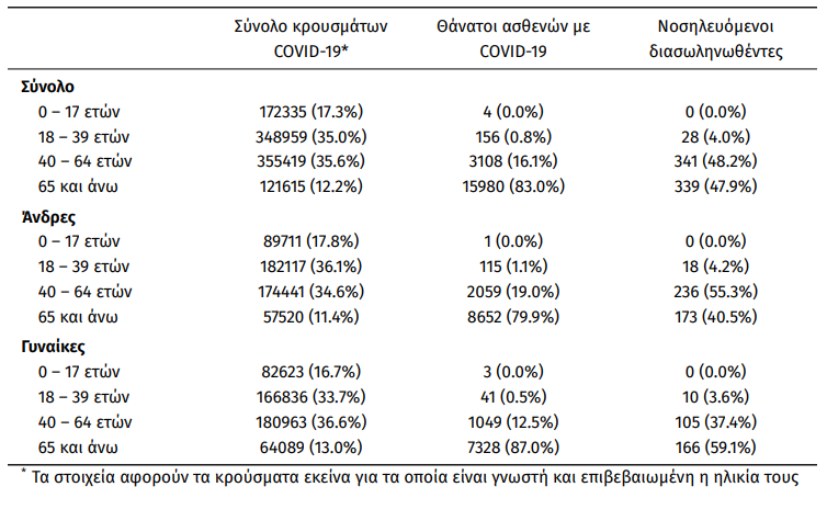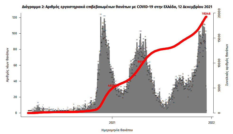 Οι νέοι θάνατοι ασθενών με COVID-19 είναι 90, ενώ από την έναρξη της επιδημίας έχουν καταγραφεί συνολικά 19.248 θάνατοι. Το 95.3% είχε υποκείμενο νόσημα ή/και ηλικία 70 ετών και άνω.