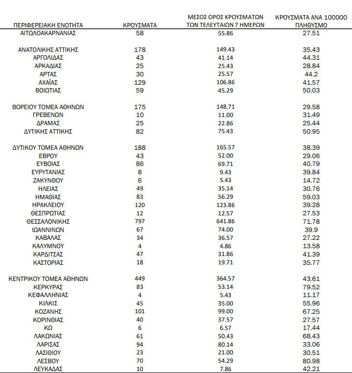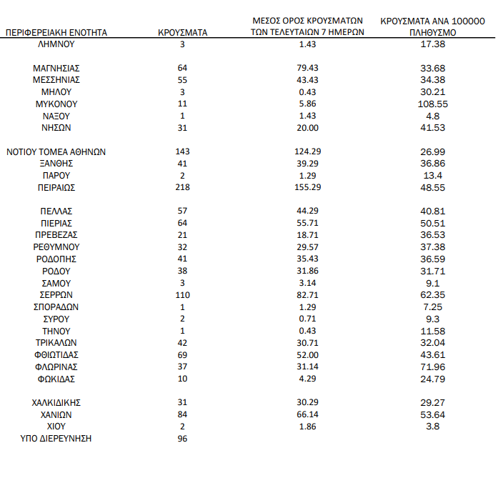Δείτε αναλυτικά που εντοπίζονται τα σημερινά κρούσματα