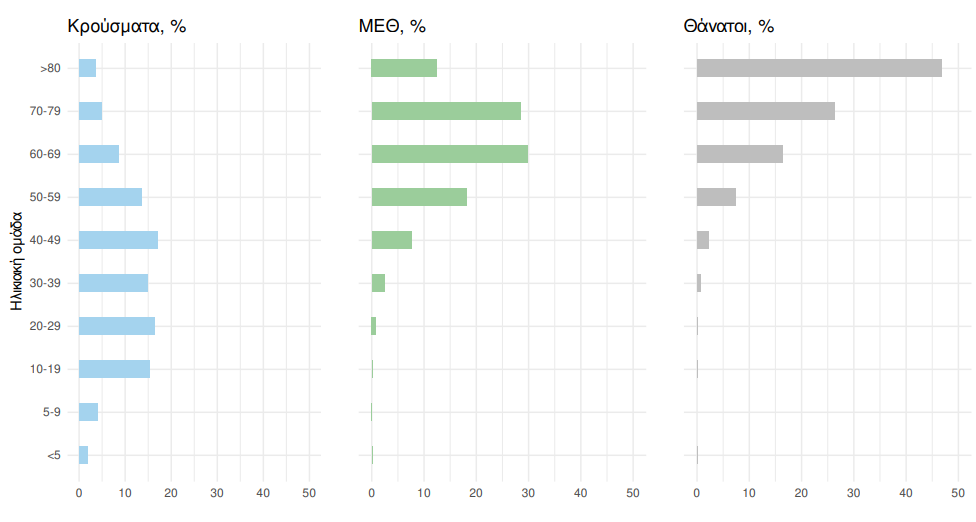 Οι νέοι θάνατοι ασθενών με COVID-19 είναι 96, ενώ από την έναρξη της επιδημίας έχουν καταγραφεί συνολικά 19.651 θάνατοι. Το 95.3% είχε υποκείμενο νόσημα ή/και ηλικία 70 ετών και άνω.