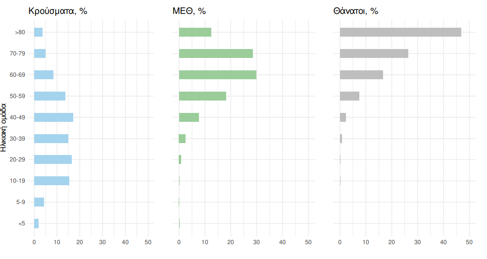 Η διάμεση ηλικία των κρουσμάτων είναι 38 έτη (εύρος 0.2 έως 106 έτη), ενώ η διάμεση ηλικία των θανόντων είναι 78 έτη (εύρος 0.2 έως 106 έτη).