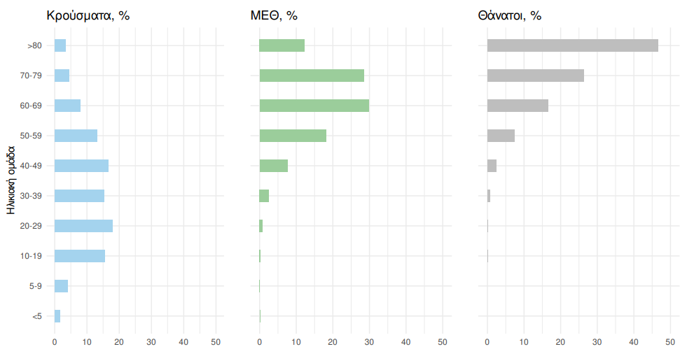 Η διάμεση ηλικία των κρουσμάτων είναι 37 έτη (εύρος 0.2 έως 110 έτη), ενώ η διάμεση ηλικία των θανόντων είναι 78 έτη (εύρος 0.2 έως 106 έτη).