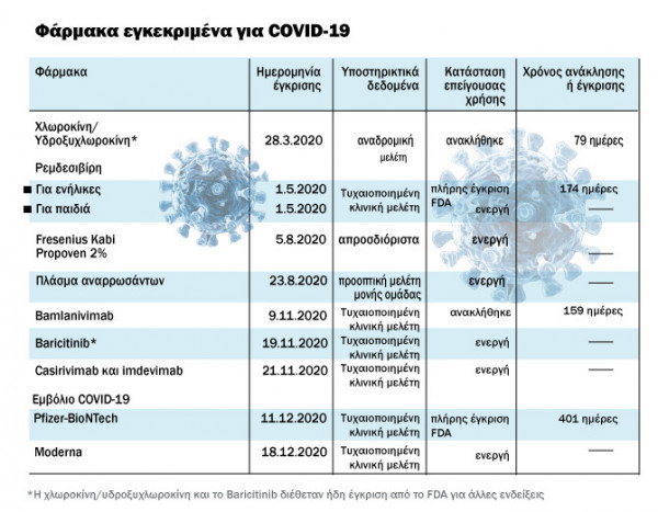 Η ίδια διαδικασία όμως, είχε και την θετική της πλευρά, καθώς ένα φάρμακο και ένα εμβόλιο παρουσιάζοντας τα απαραίτητα δεδομένα, έλαβαν πλήρη έγκριση από τον FDA.
