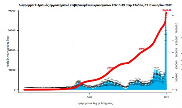 Σύμφωνα με τον ΕΟΔΥ τα νέα εργαστηριακά επιβεβαιωμένα κρούσματα της νόσου που καταγράφηκαν τις τελευταίες 24 ώρες είναι 30.010 , εκ των οποίων 20 εντοπίστηκαν κατόπιν ελέγχων στις πύλες εισόδου της χώρας. Ο συνολικός αριθμός των κρουσμάτων ανέρχεται σε 1.240.862 (ημερήσια μεταβολή +2.5%), εκ των οποίων 50.3% άνδρες.