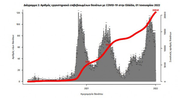 Οι νέοι θάνατοι ασθενών με COVID-19 είναι 59, ενώ από την έναρξη της επιδημίας έχουν καταγραφεί συνολικά 20.849 θάνατοι. Το 95.1% είχε υποκείμενο νόσημα ή/και ηλικία 70 ετών και άνω