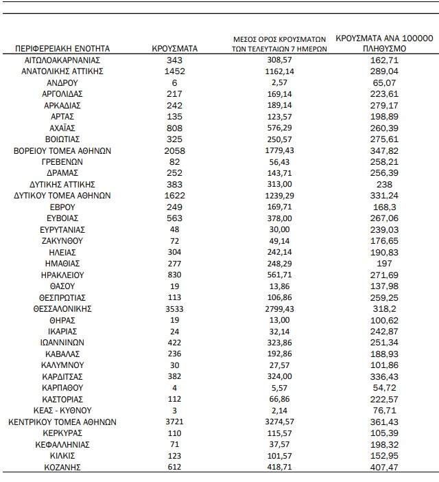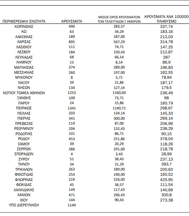 Δείτε που εντοπίζονται τα σημερινά κρούσματα: