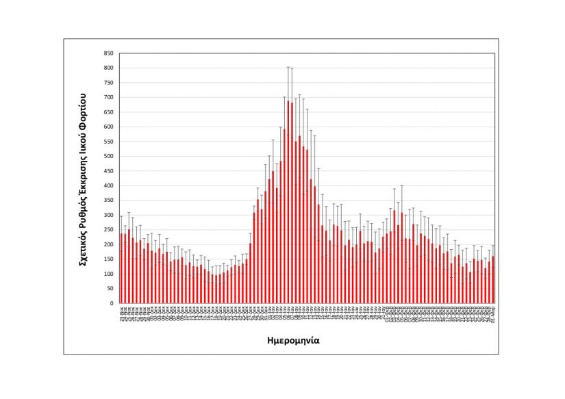 Όπως φαίνεται στα διαγράμματα, την τελευταία εβδομάδα του Φεβρουαρίου οι μετρήσεις για τον κορωνοϊό στα λύματα της Θεσσαλονίκης αποτυπώνουν διακύμανση του ιικού φορτίου, στο όριο της πειραματικής αβεβαιότητας, που πρακτικά ερμηνεύεται ως προσωρινή σταθεροποίησή του.