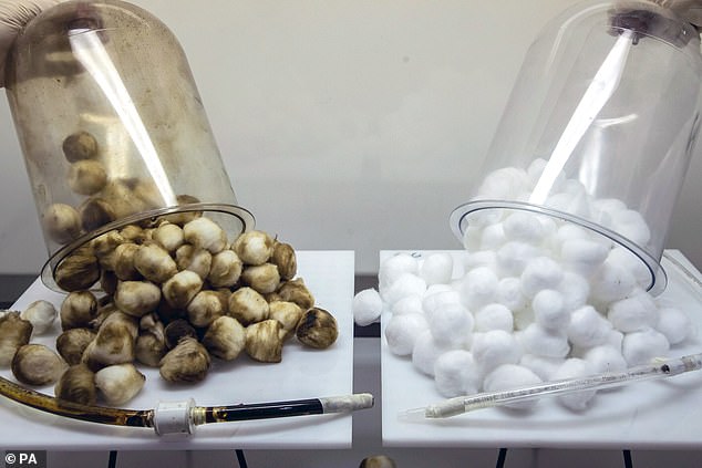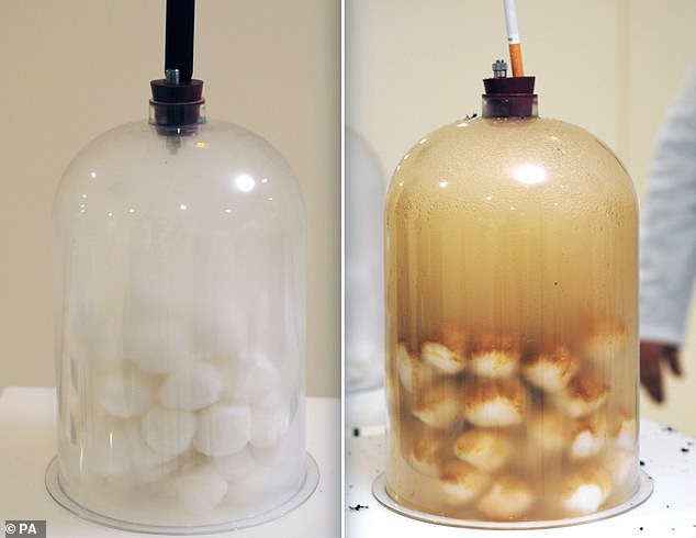 Γέμισαν λοιπόν δύο μεγάλες γυάλες με κομμάτι βαμβάκι και με ένα ειδικό σύστημα στη μία έβαζαν το καπνό από ένα κανονικό τσιγάρο και στην άλλη τον ατμό από ένα ηλεκτρονικό.