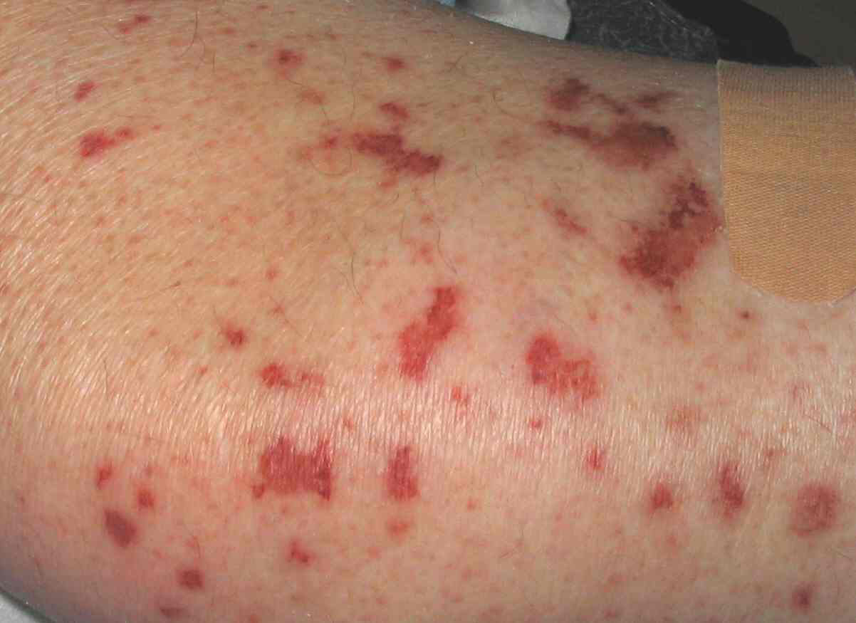 • Εξανθήματα στις παλάμες και τα πέλματα που μοιάζουν με ηλιακό έγκαυμα