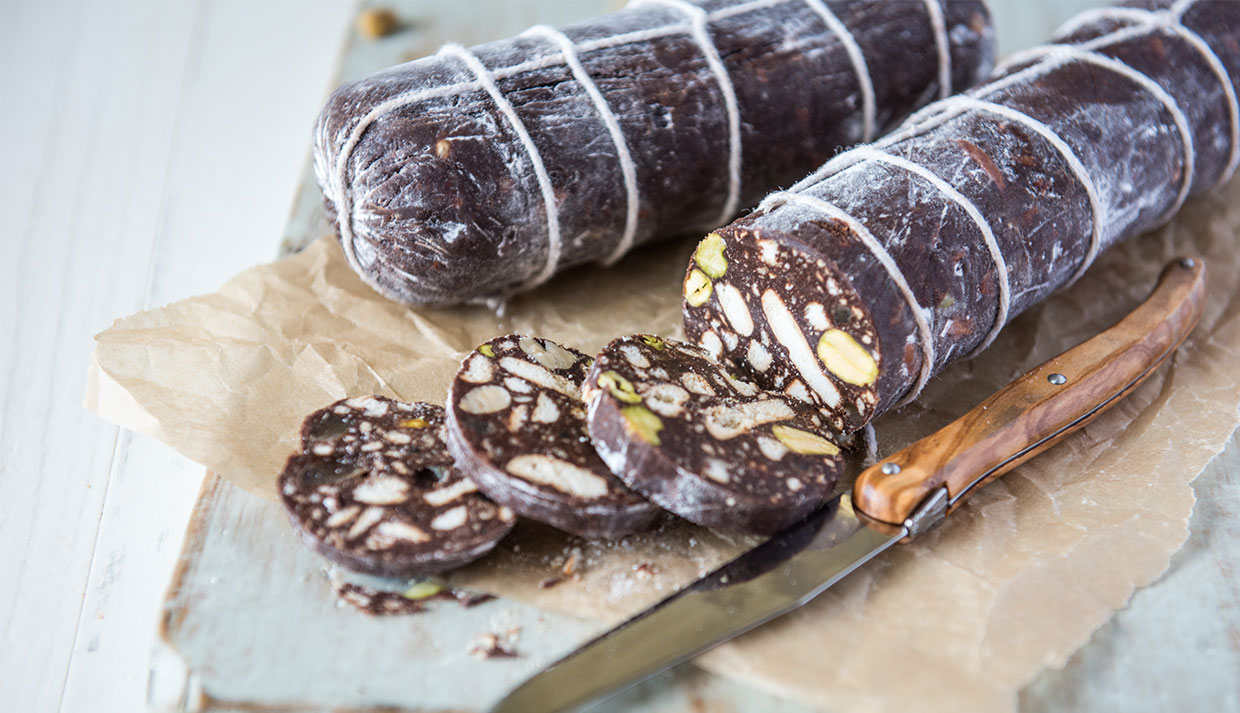 Αφού σφίξει το σαλάμι σοκολάτας, το κόβουμε σε φέτες και το απολαμβάνουμε.