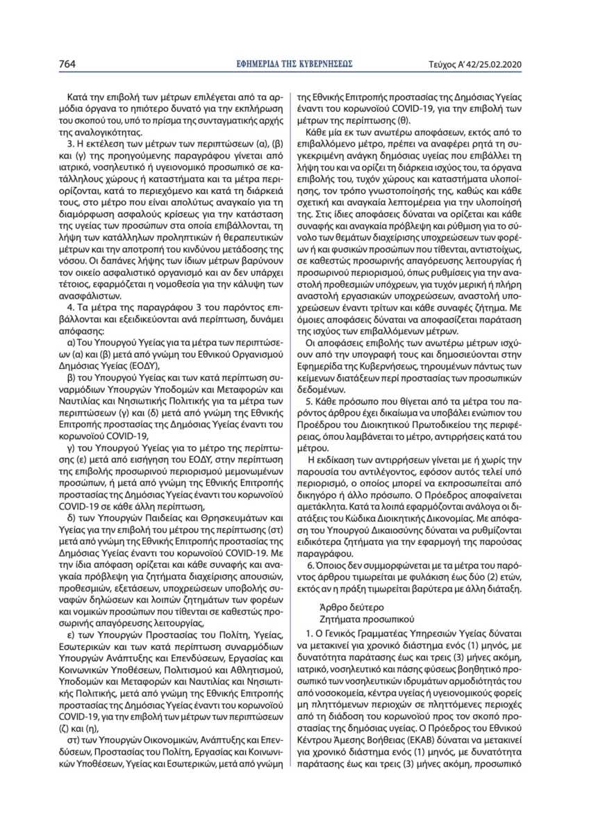 Δείτε όλη την Πράξη Νομοθετικού Περιεχομένου για τον κορωνοϊό: